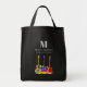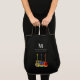 Make a lasting impression with this modern funky psychedelic Guitar Music Teacher Website QR Code Business tote designed for guitar tutors, guitarists, musicians, music teachers, and entertainers who want to stand out. This vibrant template features psychedelic pop art acoustic guitar, semi-acoustic guitar, and electric guitars in bold colors against a sleek black background. Personalize it with your monogram, name, contact details, and easily integrate your website QR code to enhance your networking efforts.