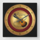 Guitar~Musical Scroll~Gold/Maroon/Black Background Square Wall Clock