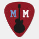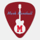 A white guitar with name and initial on side 1. Side 2: a black guitar with initials on red (custom color)