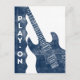 A fun Guitar postcard featuring navy blue inkpress style on white.