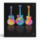 Contemporary, colorful GUITAR DESIGN in a sixties inspired, retro pop art style. Three string instruments of the rock, jazz and pop persuasion for musicians, guitarists and music lovers.