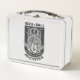 This is a standard metal lunchbox that appears to work just fine. We designed this box ourselves with an uploaded photo and custom text on the front and back. It looks absolutely beautiful except the front of the lunchbox is not centered like it shows in the photo. The print borders don't align with the inset flat part of the box where the preview photo online showed it perfectly centered in there. The back looks nice and centered though.