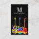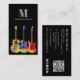 This business card design is a perfect blend of vibrant art and professional networking for musicians. Featuring a psychedelic acoustic guitar, semi-acoustic guitar, and electric guitar in bold, bright colors against a striking black background, it offers a unique, eye-catching look. The card includes a personalized monogram, adding a touch of individuality for each user. It’s an ideal tool for guitarists, music teachers, entertainers, and professional musicians who want to stand out and make lasting impressions. The easy-to-use template allows for seamless integration of essential contact details, a website QR code, and social media icons, ensuring that all your important links are readily accessible. Designed by artist Catherine Sweetman, this card combines modern style with functionality, making it perfect for business networking in the music industry.
