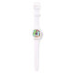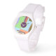 I only have one complaint. I ordered the watch with clear case and strap, and what was sent was white case and strap. I'm going to keep it because 1) it looks very nice in white, and 2) it would take too long to get a replacement made and sent in time for my occasion. Aside from the mix up with the color, the watch does look very good in white. The purple dial is actually sparkly which did not show in the online images. That was a nice surprise. If you like Swatch watches this is very similar to those. It's 33.6mm in diameter, 10.5mm thick, and 40.6mm lug to lug. Stainless steel case back says 3ATM/30m WR, so no swimming or showering or submerging this one. If you like Woodstock, this is a great choice.