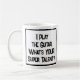Funny Guitar Player slogan on a Coffee mug that says "I Play the Guitar. What's YOUR super talent?". Coffee Mug for a Guitarist or Guitar Player. Black and white bold text.