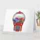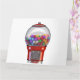 A red vintage gumball dispensing machine filled with multicolored gumballs on an isolated white background