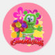 Round floral sticker featuring Gummibär - everyone's favorite gummy bear.