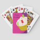 Playing cards with a smiling gummy bear cupcake. This design has a pink and purple background. This item shows the words Happy Birthday.