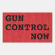 Gun Control Now on Red Linen Photo Rectangular Sticker