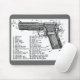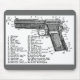 A vintage image of a gun diagram for a semi-automatic 45 caliber handgun.
