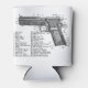 A vintage image of a gun diagram for a semi-automatic 45 caliber handgun.