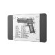 A vintage image of a gun diagram for a semi-automatic 45 caliber handgun.