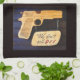 We don't call 911, Home and Business Security Humor. This design features a wood gun hanging on a wood grain background, all in earthy tones of brown which highlight it's comedic message.
