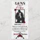 Guns or Roses Red, Black and white color scheme. Editable Red and White color block text. Bullseye Target-Shoot your Shot text on top of a Red Rose tiled background. Add your own name or text the the Bullseye! Rifles and Bullet holes add to this uniquely beautiful design. BACK: White and gold marble background. Add your own photo to the back with personalized thank you message for your guests. Perfect for your gender reveal baby shower! ©2022 Miss Sassy Party Designs