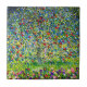 Tile featuring Gustav Klimt’s painting Apple Tree, I (1912). A colorful red apple tree stands in a green field of purple, pink, yellow, and white flowers. A perfect gift for fans of Art Nouveau and Austrian art.