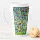 Latte Mug featuring Gustav Klimt’s painting Apple Tree, I (1912). A colorful red apple tree stands in a green field of purple, pink, yellow, and white flowers. A perfect gift for fans of Art Nouveau and Austrian art.