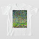 T-Shirt featuring Gustav Klimt’s painting Apple Tree, I (1912). A colorful red apple tree stands in a green field of purple, pink, yellow, and white flowers. A perfect gift for fans of Art Nouveau and Austrian art.