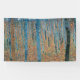 This is based on classic nature painting artworks by Gustav Klimt, Beech Grove 1, 1902. The artwork portrays a dense forest of tall, slender birch trees, with pale trunks marked by dark, vertical lines. The foliage is depicted in shades of blue, green, and yellow, adding a sense of depth and vibrancy to the scene. The forest floor is covered in a layer of orange and brown leaves, creating a striking contrast with the lighter tree trunks. The overall composition uses pointillist and impressionistic techniques, giving the image a lively, textured appearance. The verticality of the trees emphasizes the serene and rhythmic structure of the forest.