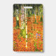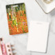 Badge featuring Gustav Klimt’s painting Farmhouse with Birch Trees (1903). An autumnal landscape of orange leaves in a birch forest with beautiful blue flowers. A wonderful gift for fans of Art Nouveau and Austrian art.