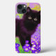 iPhone Case featuring a Gustav Klimt black kitten! This wide-eyed beauty poses in a green field of purple flowers. A thoughtful gift for cat lovers and Austrian art enthusiasts!
