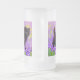 Frosted Glass Beer Mug featuring a Gustav Klimt black kitten! This wide-eyed beauty poses in a green field of purple flowers. A thoughtful gift for cat lovers and Austrian art enthusiasts!