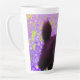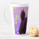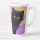 Latte Mug featuring a Gustav Klimt black kitten! This wide-eyed beauty poses in a green field of purple flowers. A thoughtful gift for cat lovers and Austrian art enthusiasts!
