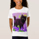 T-Shirt featuring a Gustav Klimt black kitten! This wide-eyed beauty poses in a green field of purple flowers. A thoughtful gift for cat lovers and Austrian art enthusiasts!