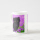 Bone China Mug featuring a Gustav Klimt cat! This fluffy kitty sits in a green field of purple flowers. A purr-fect gift for cat lovers and Austrian art enthusiasts!