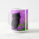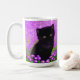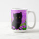Coffee Mug featuring a Gustav Klimt cat! This fluffy kitty sits in a green field of purple flowers. A purr-fect gift for cat lovers and Austrian art enthusiasts!
