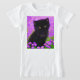 T-Shirt featuring a Gustav Klimt cat! This fluffy kitty sits in a green field of purple flowers. A purr-fect gift for cat lovers and Austrian art enthusiasts!