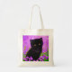 Tote Bag featuring a Gustav Klimt cat! This fluffy kitty sits in a green field of purple flowers. A purr-fect gift for cat lovers and Austrian art enthusiasts!