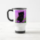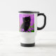 Travel Mug featuring a Gustav Klimt cat! This fluffy kitty sits in a green field of purple flowers. A purr-fect gift for cat lovers and Austrian art enthusiasts!