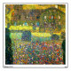 A beautiful classic wall decal featuring a country house at the Attersee surrounded by colorful flowers, painted by the Austrian symbolist painter Gustav Klimt.