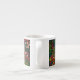 Espresso Cup featuring Gustav Klimt’s oil painting Farm Garden with Sunflowers (1907). A beautiful garden of sunflowers and exquisite blue, red, purple, pink, and white flowers. A great gift for fans of Art Nouveau and Austrian art.
