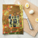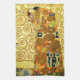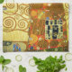 Gustav Klimt Fulfillment kitchen towel. Frieze from 1909. Completed during Klimt’s golden phase, Fulfillment features an embracing couple holding each other beneath a multi-patterned quilt featuring spirals, eyes, birds, fish and other shapes. The background of the work features the same bronze spirals that would adorn the artist’s renowned Tree of Life. A great gift for fans of Gustav Klimt, Austrian symbolism, allegorical painting, and art nouveau.
