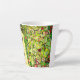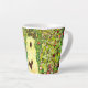 Latte Mug featuring Gustav Klimt’s oil painting Garden with Roosters (1917). Two brown chickens stand on a garden path. Beautiful pink, red, and white flowers bloom along the path. A great gift for fans of Art Nouveau and Austrian art.