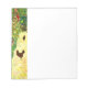 Notepad featuring Gustav Klimt’s oil painting Garden with Roosters (1917). Two brown chickens stand on a garden path. Beautiful pink, red, and white flowers bloom along the path. A great gift for fans of Art Nouveau and Austrian art.
