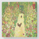 Stone Coaster featuring Gustav Klimt’s oil painting Garden with Roosters (1917). Two brown chickens stand on a garden path. Beautiful pink, red, and white flowers bloom along the path. A great gift for fans of Art Nouveau and Austrian art.