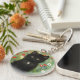 Keychain featuring a Gustav Klimt kitten! This black kitty wears a silver collar and sits in a field of red, blue, white, and yellow flowers. A wonderful gift for cat lovers and Austrian art enthusiasts!
