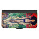 iPhone Wallet Case featuring Gustav Klimt’s oil painting Portrait of Adele Bloch-Bauer II (1912). A woman in a black hat stands in a beautiful landscape of vivid red, purple, pink, and green with flowers and horses. A great gift for fans of Art Nouveau and Austrian art.