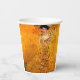 Paper Cups featuring Gustav Klimt’s oil painting Portrait of Adele Bloch Bauer I (1907). A beautiful woman wears a golden and geometric dress in front of a gold background. A great gift for fans of Art Nouveau and Austrian art.