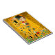 Notebook featuring Gustav Klimt’s oil painting with gold leaf The Kiss (1908). A man and woman, wearing brilliant golden colors, lovingly embrace and kiss in a field of flowers. A great gift for fans of Art Nouveau and Austrian art.