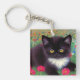 Keychain featuring a Gustav Klimt tuxedo cat! This adorable black and white kitty sits in a field of red, blue, white, and orange flowers. An awesome gift for cat lovers and Austrian art enthusiasts!