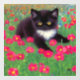 Window Cling featuring a Gustav Klimt tuxedo cat! This adorable black and white kitty sits in a field of red, blue, white, and orange flowers. An awesome gift for cat lovers and Austrian art enthusiasts!