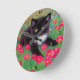 Clock featuring a Gustav Klimt tuxedo cat! This adorable black and white kitty sits in a field of red, blue, white, and orange flowers. An awesome gift for cat lovers and Austrian art enthusiasts!