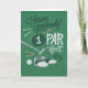 This design features an original illustration of golf shoes, a putter, a ball and tees. It features hand lettering. The inside features a piece of cake with some golf tees. A custom message can be added to the inside to make this card truly special for a male or female who loves the game of golf.