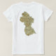 The front of this t-shirt boldly displays the Guyanese flag with its distinctive black fimbriated red triangle on a white fimbriated yellow triangle on a green background. This is matched at the back by an attractive map of Guyana.
