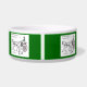 Greater Washington Dalmatian Club Road Trial logo -- undated version. Dog bowls with black and white drawing, accented with brown and green. Background color of your choice, or leave it green as shown. Personalize it with your dog's name and titles.
