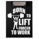 Gym Motivation - Born To Lift, Forced To Work Clipboard
