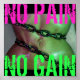 A motivational poster "no pain no gain" featuring a woman's stomach with sweat wrapped with chains. The struggle is worth it. Text can be customized.